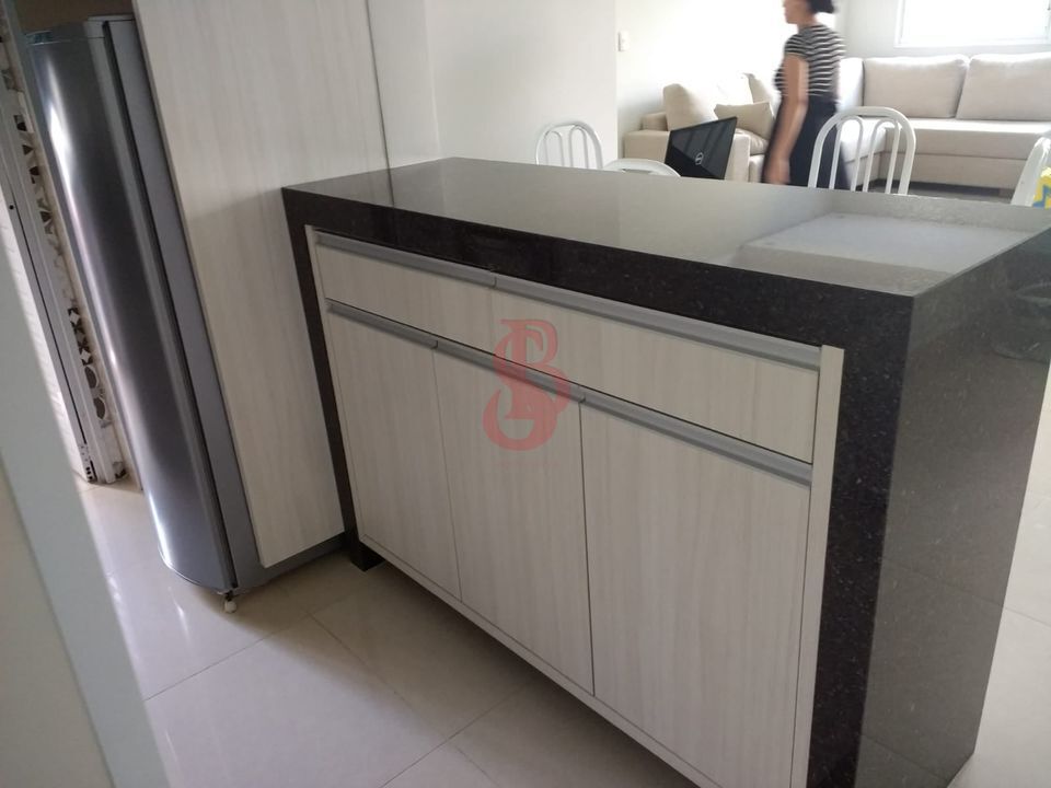 Apartamento com 2 dormitórios, sala de estar, cozinha com armários planejado, fogão e forno, parede e porta separando a lavanderia, banheiro, 1 vaga de garagem coberta.