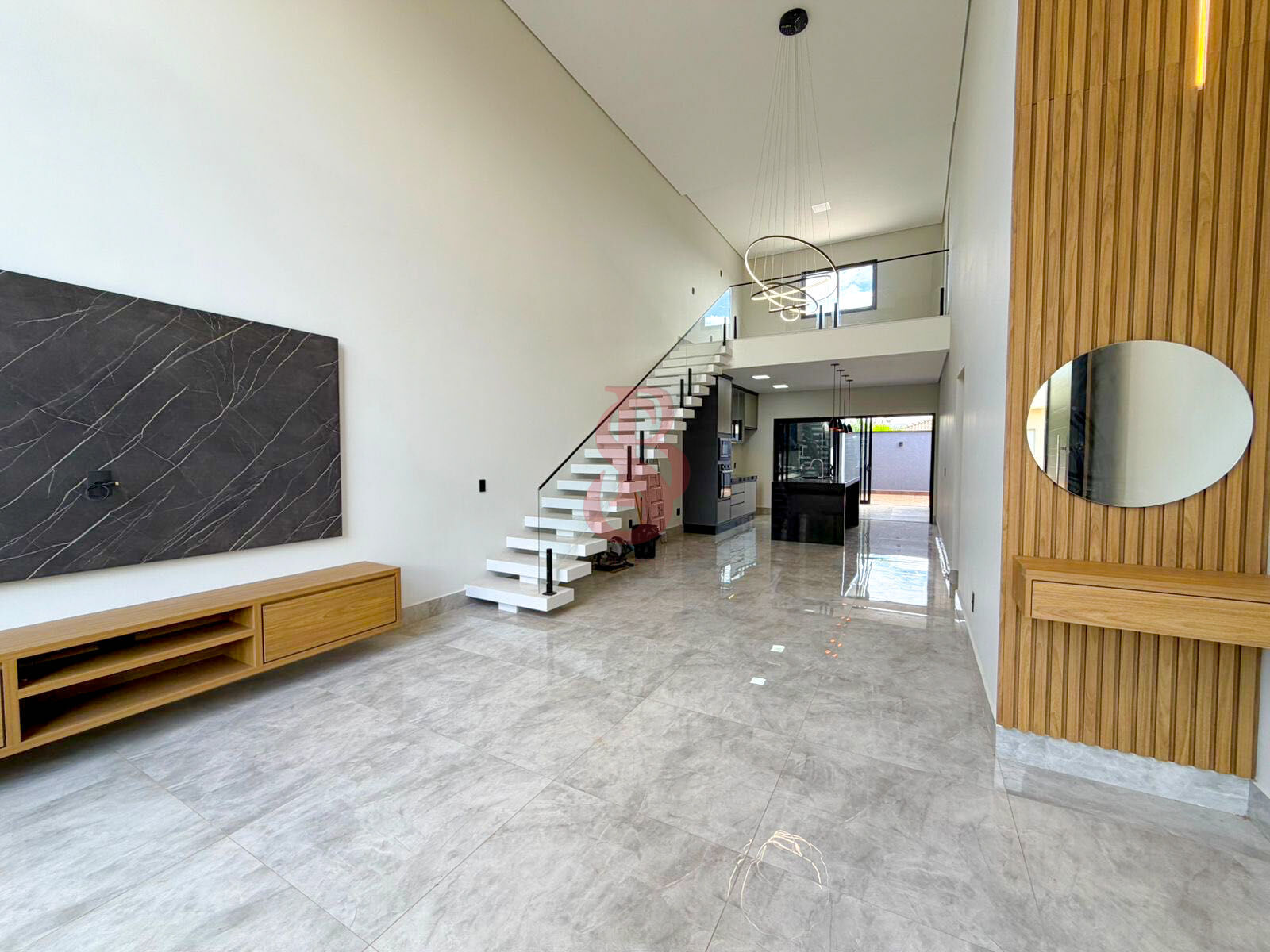 Na parte superior contém 1 lavabo, 1 Sala podendo ser escritório ou sala de Tv.