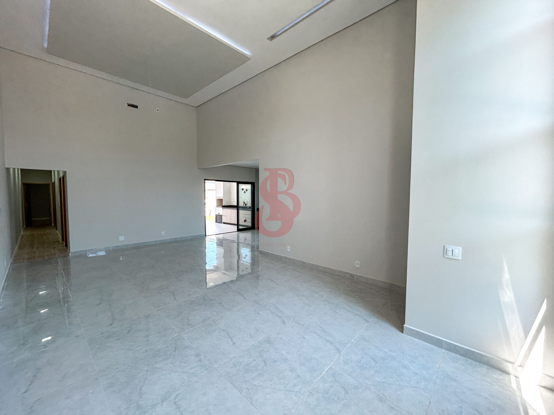🛋 Sala ampla com pé-direito alto, integrada à cozinha