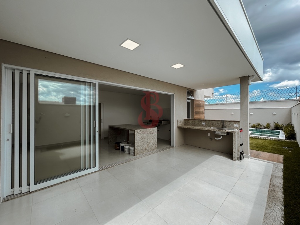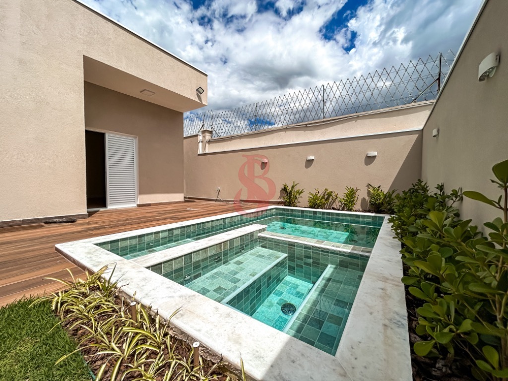 Casa com 3 dormitórios sendo uma suíte, sala de estar e sala de jantar integradas, cozinha com ilha, banheiro social, área gourmet, área de serviço, piscina e 4 vagas de garagem.