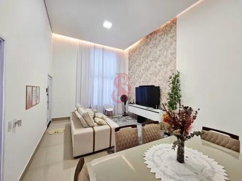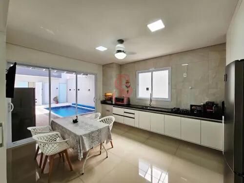 Casa com 3 dormitórios sendo 1 suite com closet, sala de estar e jantar integradas, cozinha Gourmet com cooktop e churrasqueira, lavanderia, banheiro social, lavabo, quintal, piscina toda iluminada, com cascata e 4 vagas de garagem.