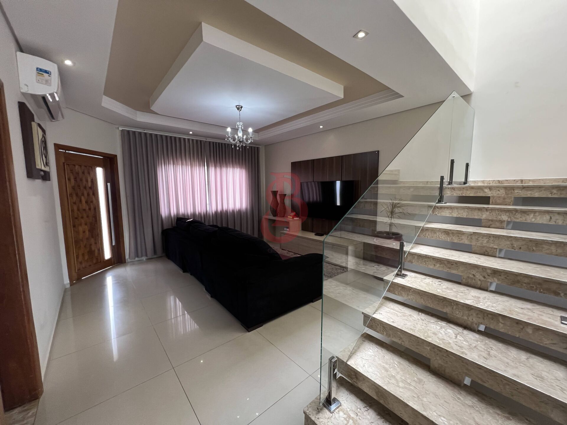 Ar condicionado na sala e nos quartos.