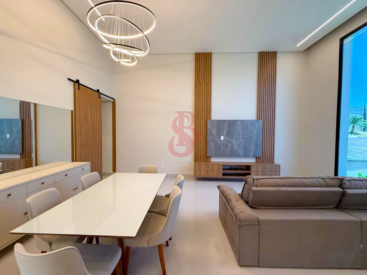 • 🛋️ Mobília inclusa: sofá, mesa de jantar, planejados e painel de TV