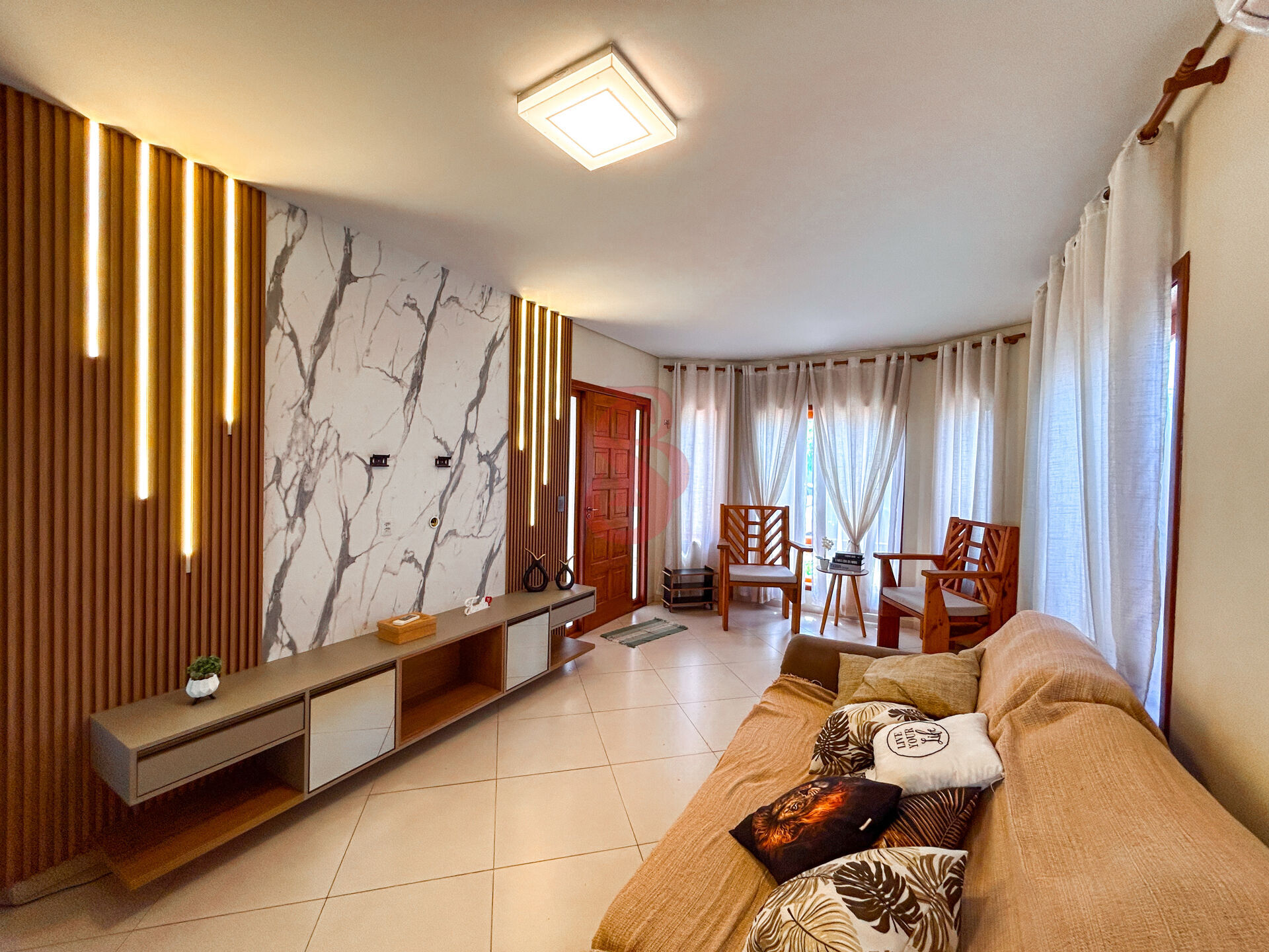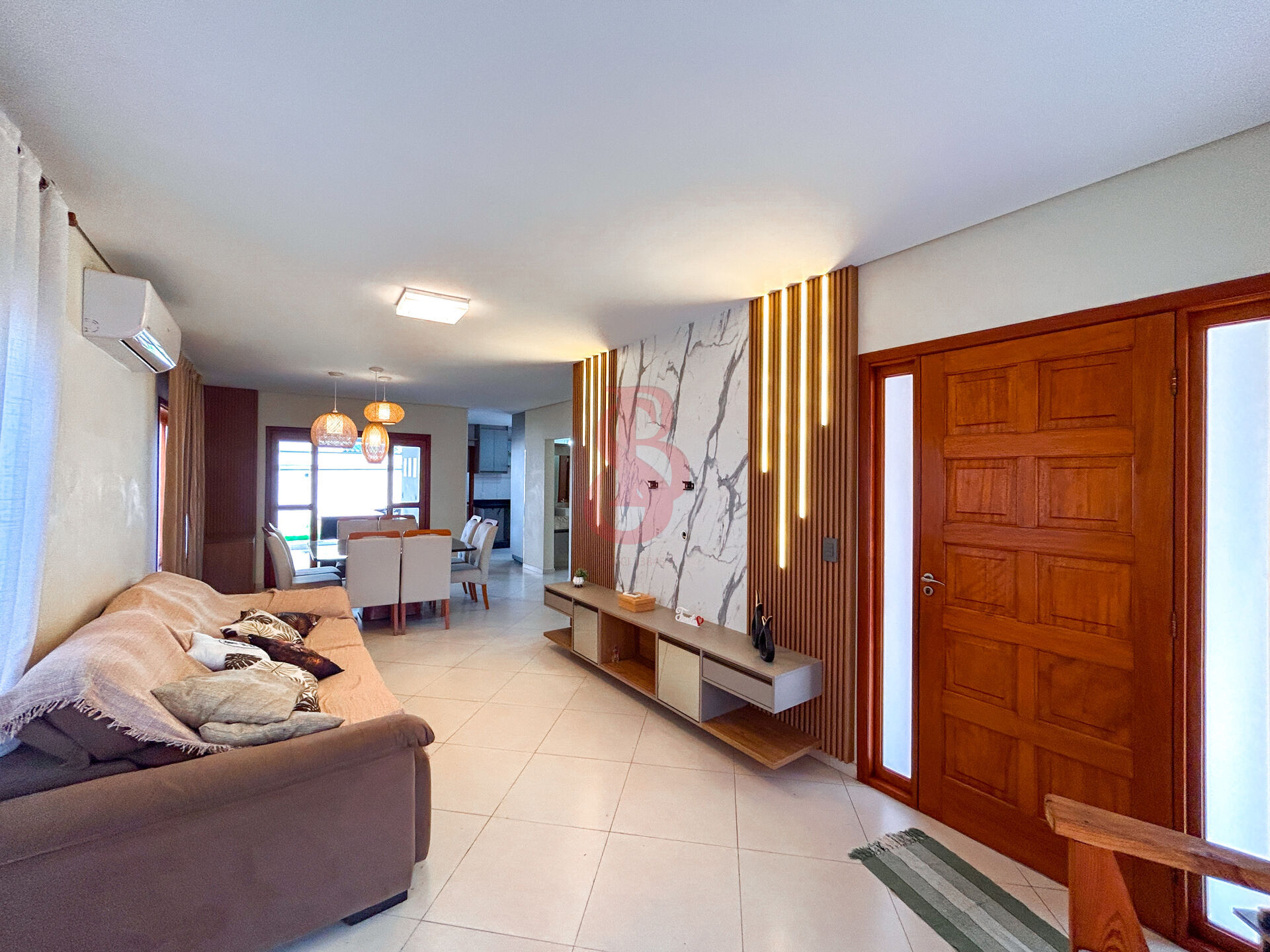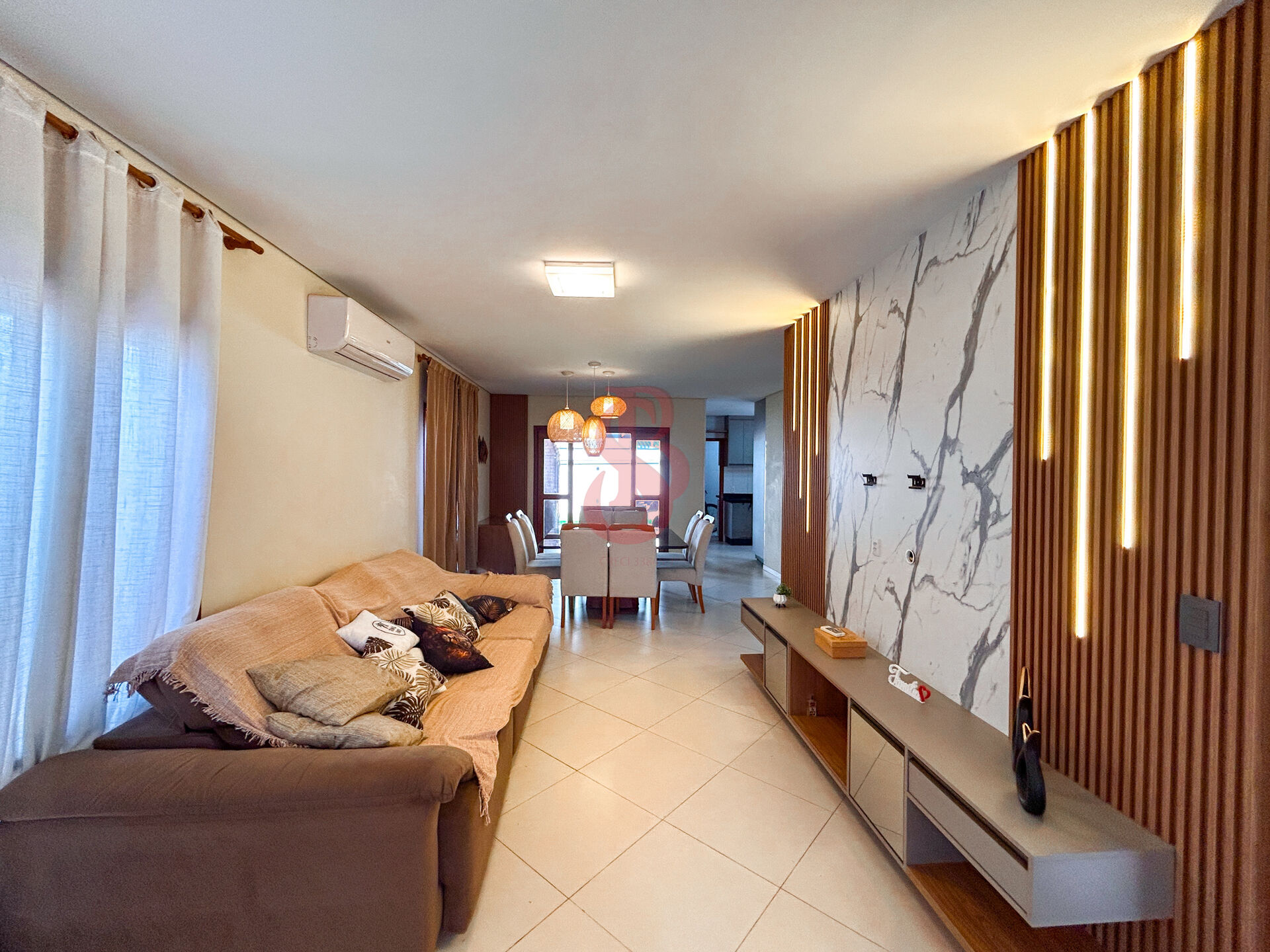 Sobrado com 3 suítes master c/ planejados e ar condicionado e sacada, sala de estar c/painel ripado e led, sala de jantar c/ pendentes, cozinha planejada com armários e toda equipada, lavabo na área externa, área gourmet com bancada em mármore, churrasqueira planejados banquetas de extremo requinte, quintal gramado, pergolado, 4 vagas de garagem.