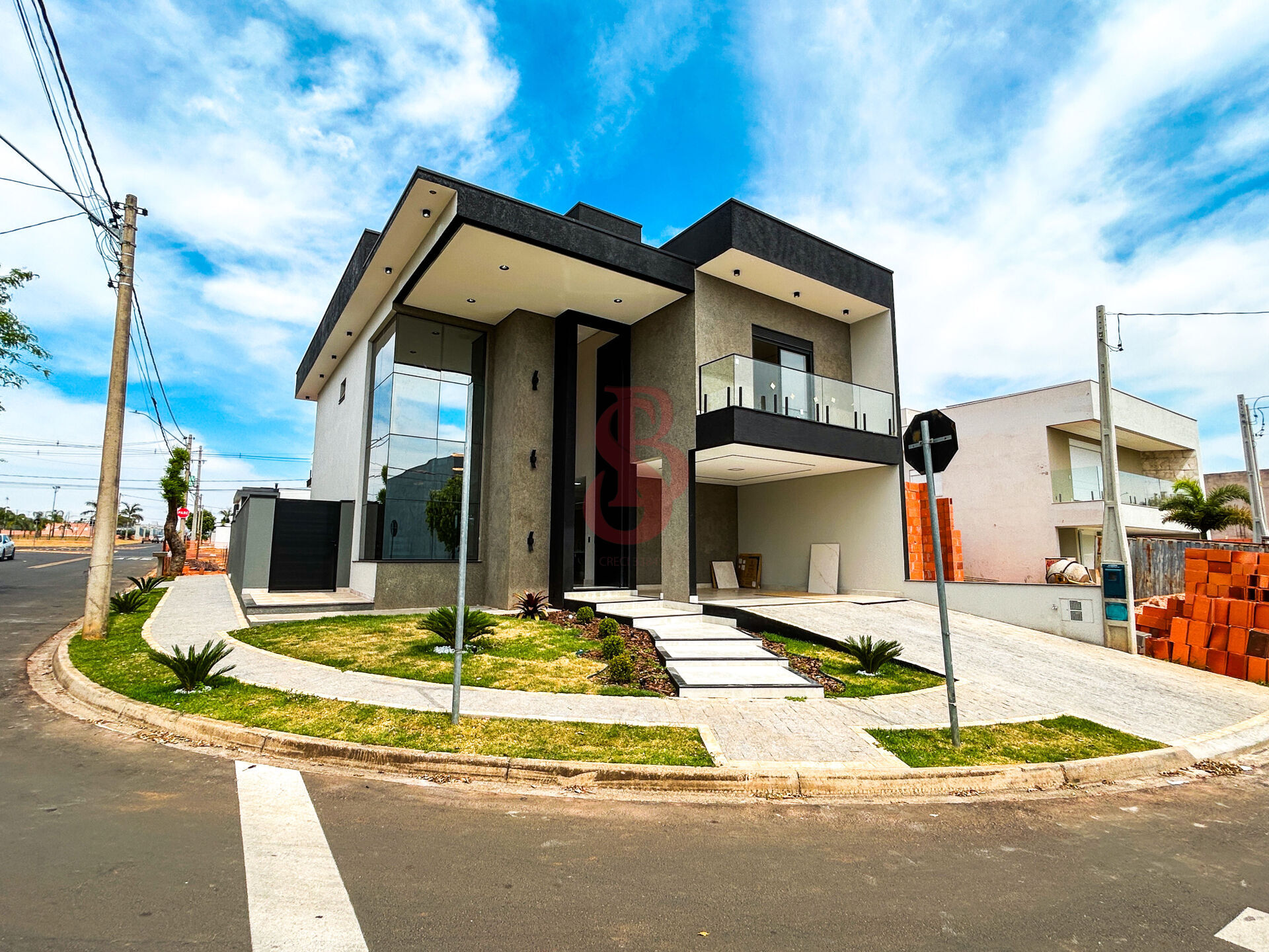 Sobrado de esquina No térreo, dispõe de sala de estar integrada à cozinha com ilha central equipada com cooktop, além de escritório e banheiro social. A área social já se conecta à piscina e à área gourmet, que conta com cooktop, lavabo e despensa. No piso superior, são três suítes amplas, sendo a suíte master com banheiro equipado com duas cubas e box até o teto.