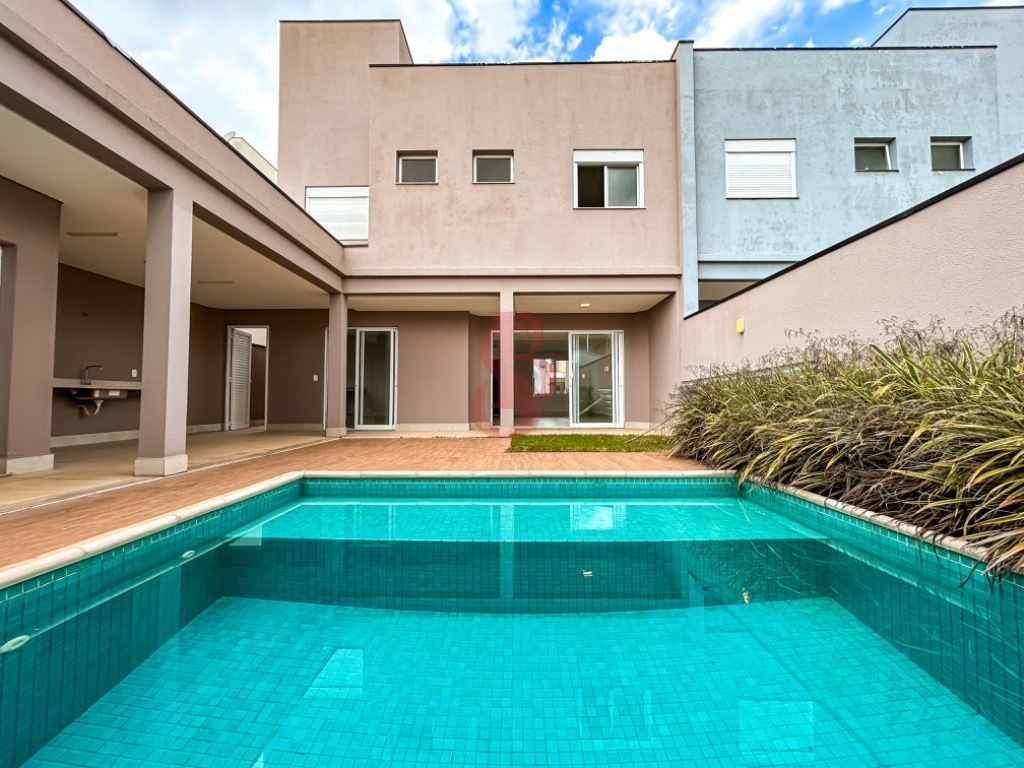 Sobrado 3 suítes com persianas automáticas, cozinha planejada, sala de estar e jantar integradas, lavabo, área gourmet com churrasqueira, piscina, lavabo na área externa, área de serviço, garagem.
